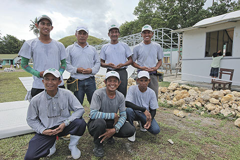 慈濟援建保和島一百五十間簡易教室,最重要的幕後組裝小老師,是來自大馬尼拉地區馬利僅那市的本土慈濟人。海燕風災後,他們持續在獨魯萬(Tacloban)、奧莫克(Ormoc)等災區協助搭建簡易教室迄今。