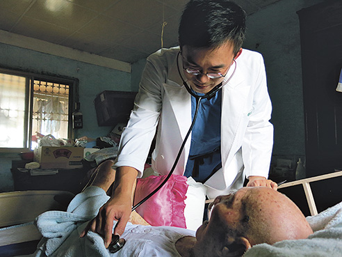 居家照護病患大多有鼻胃管、導尿管或胃造?,需要定期更換檢查。每週,醫師與護理師一組兩人走進偏遠鄉鎮照顧居家病患,這樣的服務,關山慈院已持續十四年。