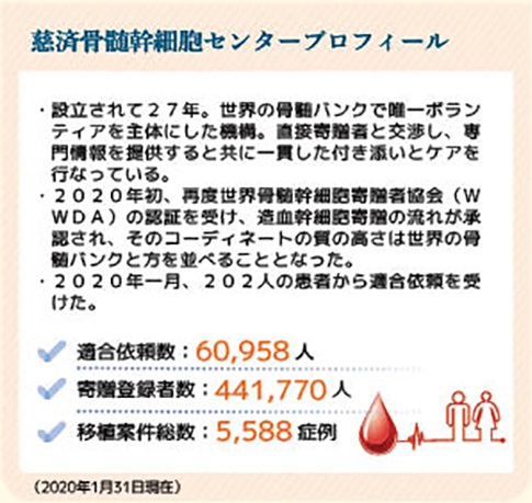 ●2020年初、再度世界骨髄幹細胞寄贈者協会(WWDA)の認証を受け、造血幹細胞寄贈の流れが承認され、そのコーディネートの質の高さは世界の骨髄バンクと方を並べることとなった。