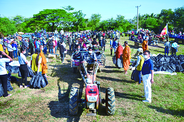 プノンペンの慈済ボランティアは、昨年十二月下旬に最も水害が深刻だったバタンバン州で配付を行う予定だったが、十一月下旬に政府より防疫に関する緊急禁止令が公布された。年末になってやっと解除され、今年の一月五日から十二日まで六つの県で、二万百三十一世帯に白米と食用油の配付を行った。九つの会場では、それぞれ徒歩、バイク、トラクターによる受取を区分けすることで、配付をより迅速にした。