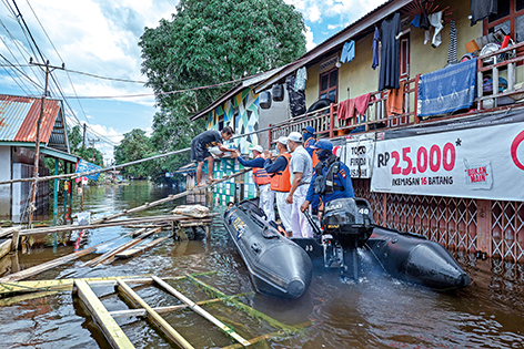 二〇二一年十月末、インドネシアは雨季が始まり、多くの州で驚くべき雨量を記録した。西カリマンタン州のシンタン県、メラウィ県等は、浸水して一カ月以上経っても水が引かず、交通が中断したままで、全州八万を超える人が被災した。多くの住民は家に閉じ込められ、早急に薬とベビー用品、生活物資の支援が必要になっていた。