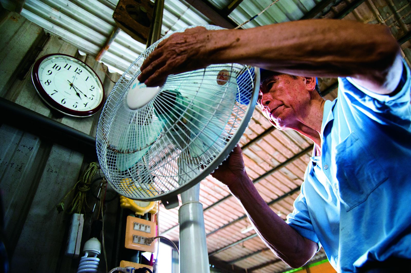 He often shares maintenance tips with people. For example, lubricating the rotating axis regularly can help extend the useful life of a fan, or else the axis may rust and get stuck. He also tells them never to wash a motor or spray water on the whole fan.