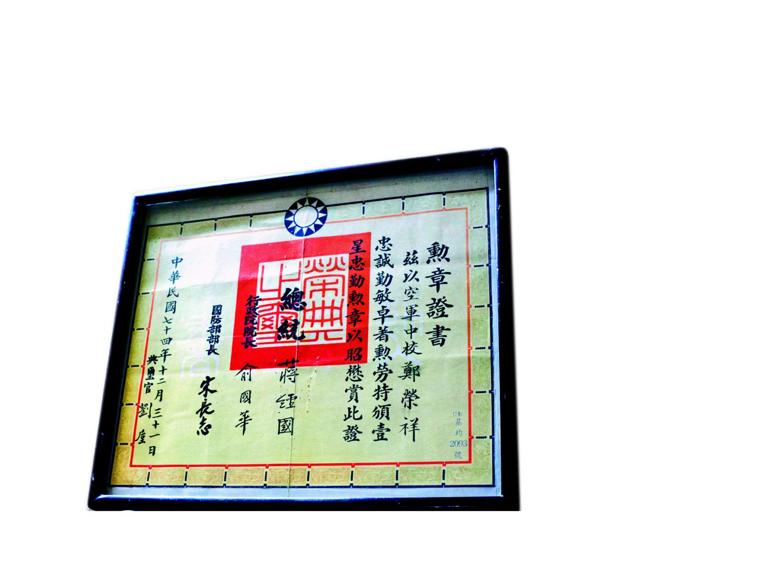 Zheng in his air force days, and a certificate awarded for his excellent performance in the military. Photos courtesty of Zheng Rong-xiang