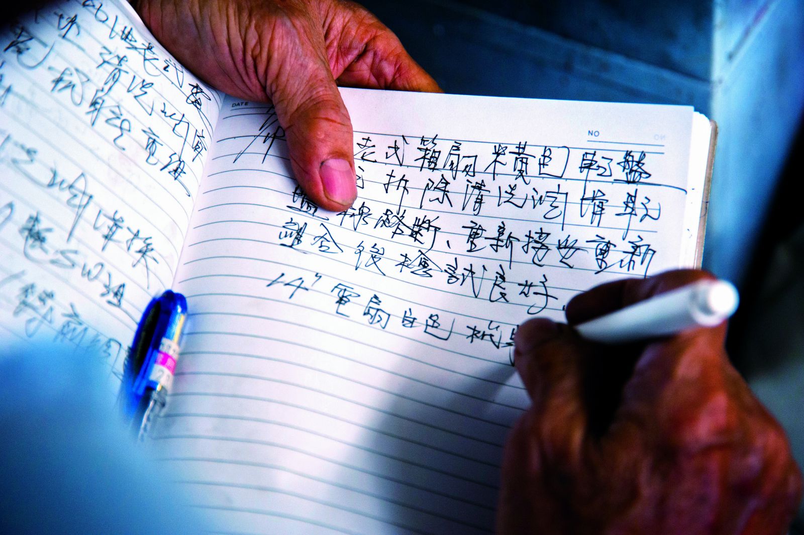 Zheng keeps a detailed record of every fan he works on, including the appearance of the fan and the repairs he did to it.