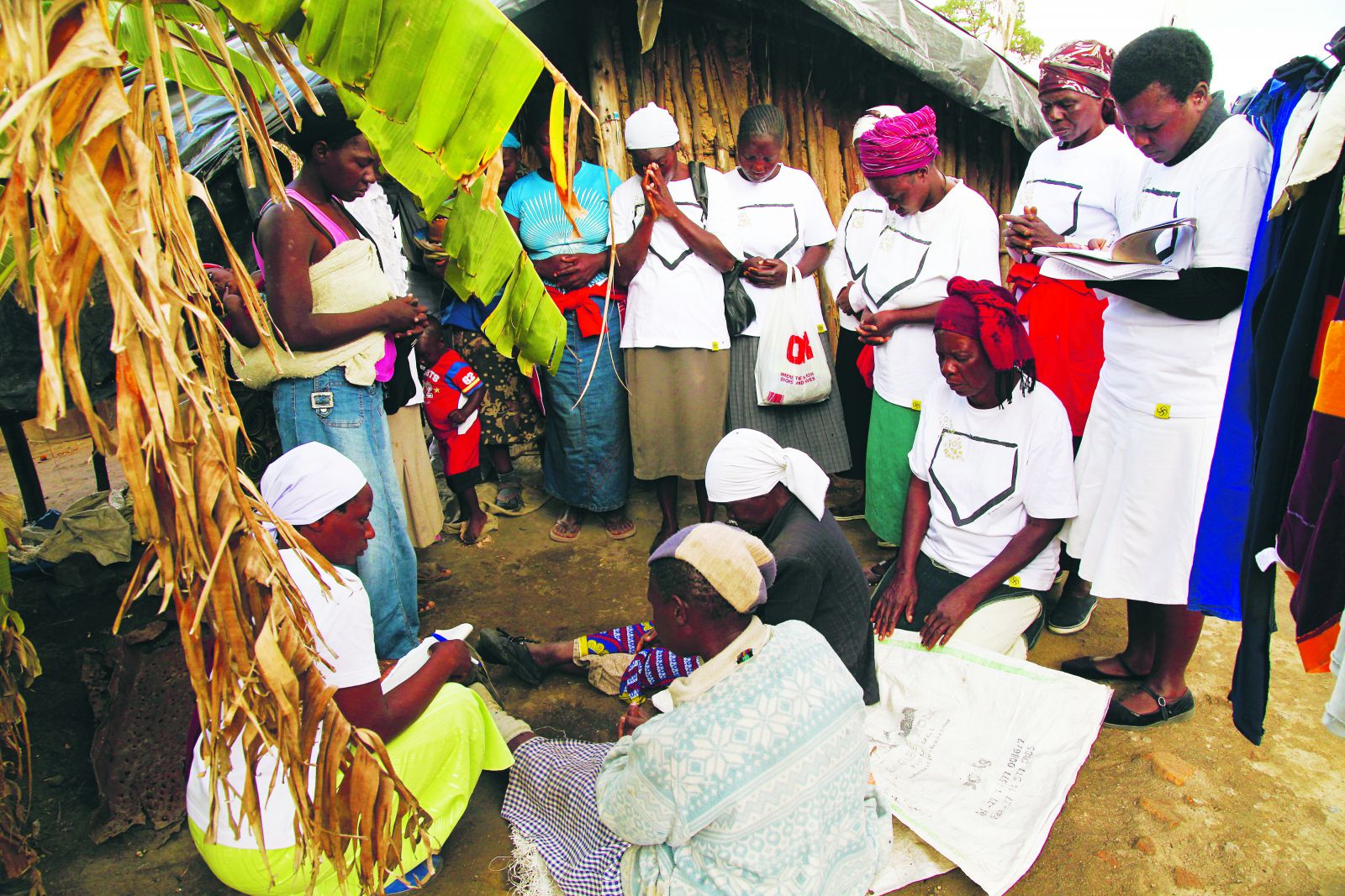 On a visit to a needy family, Tzu Chi volunteers in Zimbabwe pray with the family.