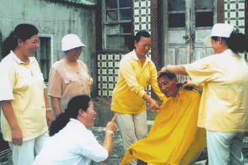 活潑健談的桂桑常率領著一群娘子軍訪視照顧戶,並為他們整理儀容。